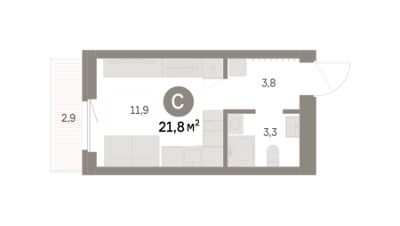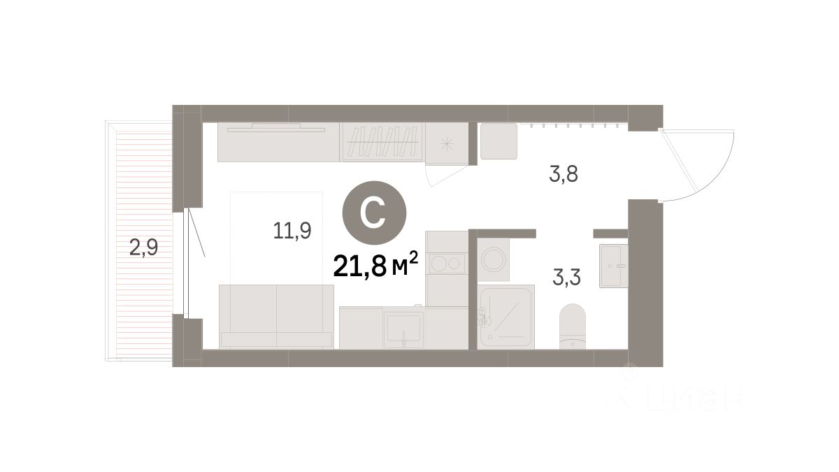 Студия в районе Шишимская горка. Особенности планировки: балкон, предчистовая отделка.