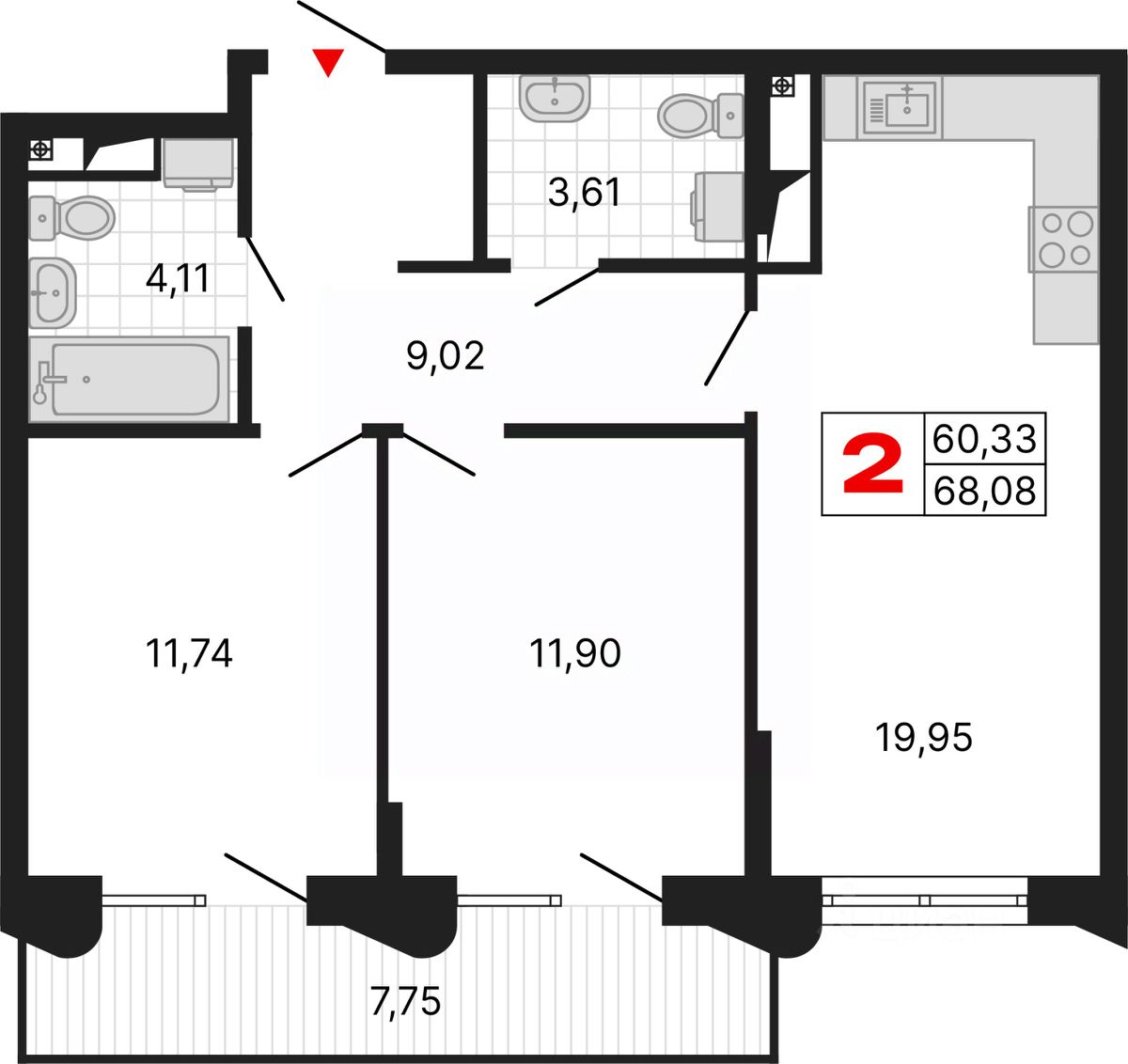 2-комн. квартира с предчистовой отделкой в ЖК "Алиса" на 3 этаже. Общая площадь: 68.08 кв.м., жилая: 23.64 кв.м., площадь просторной кухни-столовой: 19.95 кв.м. Комнаты изолированные, все окна выходят на одну сторону. В квартире два балкона, два совмещенных санузла. Терраса представляет собой роскошную зону отдыха, где вы на свой вкус можете создать атмосферу комфорта и уюта. Высота потолков 2.72 м.