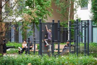 Благоустройство квартала основано на трёх принципах. Первый — особое внимание к воде. Архитекторы Брусники создадут внутри застройки систему дождевых садов, которые будут фильтровать сток (в том числе с крыш зданий) и снижать нагрузку на ливневую канализацию .