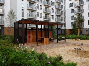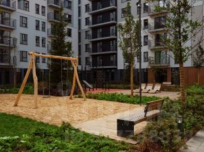 Благоустройство квартала основано на трёх принципах. Первый — особое внимание к воде. Архитекторы Брусники создадут внутри застройки систему дождевых садов, которые будут фильтровать сток (в том числе с крыш зданий) и снижать нагрузку на ливневую канализацию .