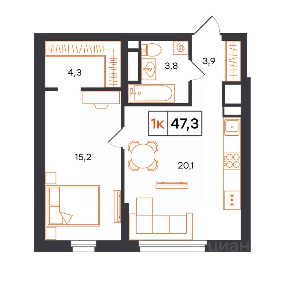 Общая площадь47,3 м²