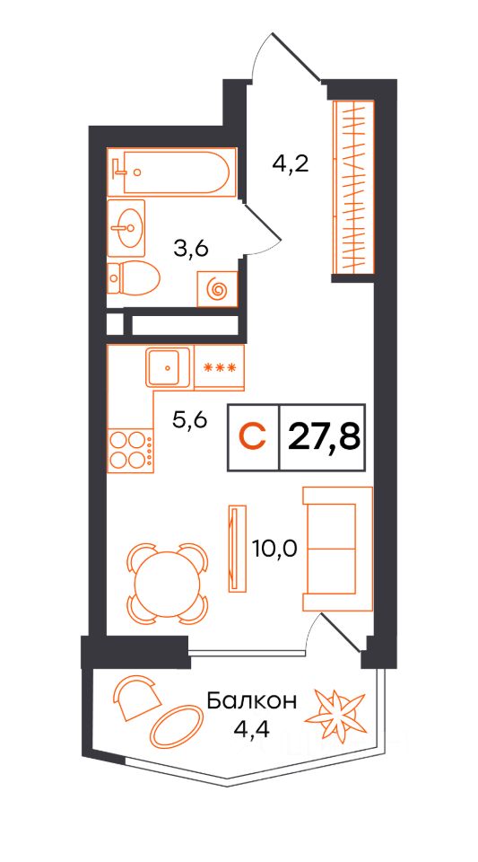 Уютная студия с эргономичной планировкой, сдается в предчистовой отделке в жилом комплексе Интро. Интро семейный жилой комплекс, расположен в районе Чкаловский. Дом переменной этажности где каждая квартира наполнена светом, а из окон открывается завораживающий вид на парк или город. Архитектура Современная архитектура проекта основана на простых геометрических формах. Фасады выполнены в спокойных природных тонах. Отдельное внимание уделили подсветке домов, которая загорается по вечерам и создает во дворе незабываемую атмосферу. За счет переменной этажности фасады дома приобретают особую динамику. Благоустройство Благоустройство выполнено по ландшафтному дизайну. В проекте предусмотрены: закрытая дворовая территория под видеонаблюдением, спортивные и детские площадки, скалодром, зоны отдыха для взрослых, разноуровневое освещение. Безбарьерный вход в дизайнерские парадные, с теплым тамбуром и мягкими зонами ожидания, дизайнерское освещение.