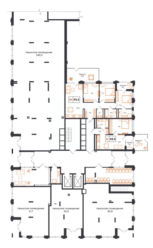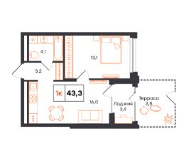 Общая площадь43,3 м²