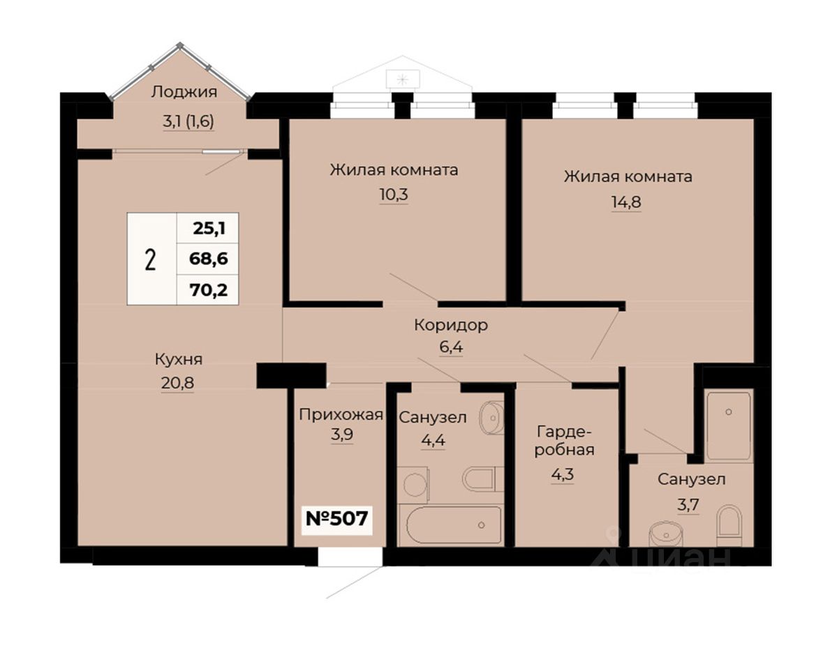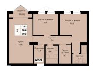 Продаётся 2-комнатная квартира в сданном доме (Секция 1.3), срок сдачи: IV-кв. 2024, общей площадью 70.2 кв.м., на 31 этаже.