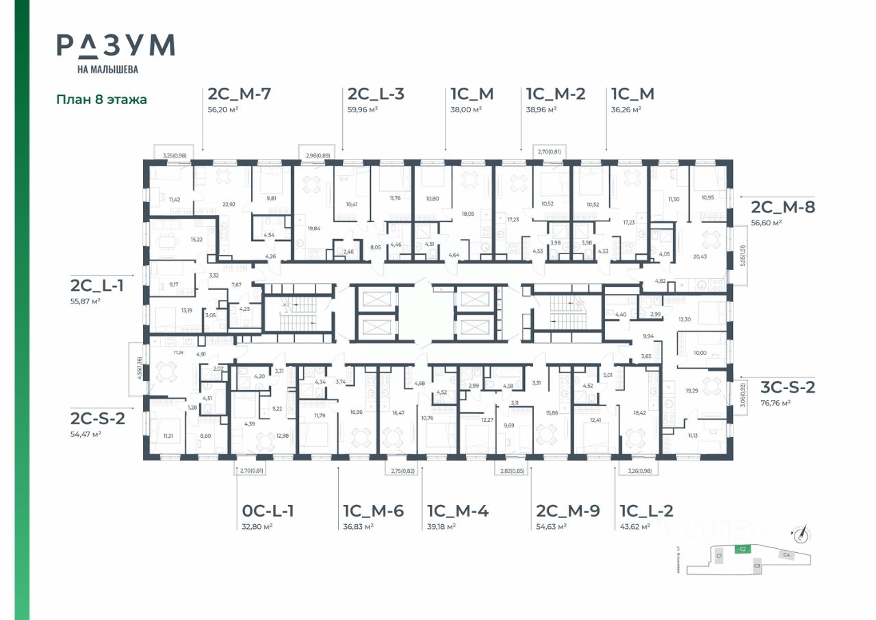 "РАЗУМ на Малышева" — новый проект от федерального девелопера с 12-летним опытом. Квартал расположен в самом сердце Екатеринбурга в Кировском районе. В шаговой доступности: 8 детских садов; 7 школ; прогулочные зоны и парки; магазины; учреждения профессионального образования. "РАЗУМ на Малышева" — это четыре 31-этажных башен на улице Малышева. Дополнительная приватность, безопасность и тишина создаётся за счёт возвышения домов на стилобате. Балконы на фасадах открывают виды на город и во двор, а угловые террасы открывают ещё больше простора и потрясающих видов. Жители квартала "РАЗУМ на Малышева" наслаждаются зелёными зонами круглый год. 60% территории занимает озеленение с деревьями, кустарниками и многолетниками. Здесь прогулки, отдых, работа и встречи с друзьями проходят в уютных зонах с перголами, шезлонгами и гамаками. "РАЗУМ на Малышева" — это: развитая инфраструктура; эргономичные и яркие архитектурные решения; дополнительный уровень спокойствия за счет возвышения на стилобате; во дворе высажены деревья и кустарники с учетом 4 сезонов; многоуровневое освещение; благоустройство; высокий уровень безопасности; стильные гранд-лобби и ресепшн; особые панорамные виды; собственная управляющая компания; собственный детский сад на 150 мест; четырёхэтажный паркинг; соседский центр место развития добрососедства; коммерческие помещения. Эргономичность и удобство в каждом квадратном метре — основа планировочных решений в квартале "РАЗУМ на Малышева". Для каждого сценария жизни найдется планировка: представлены десятки вариантов от 29,92 м² до 84,88 м². Квартиры с террасами размещены на верхних этажах домов. Терраса — это дополнительное пространство для слияния с природой.