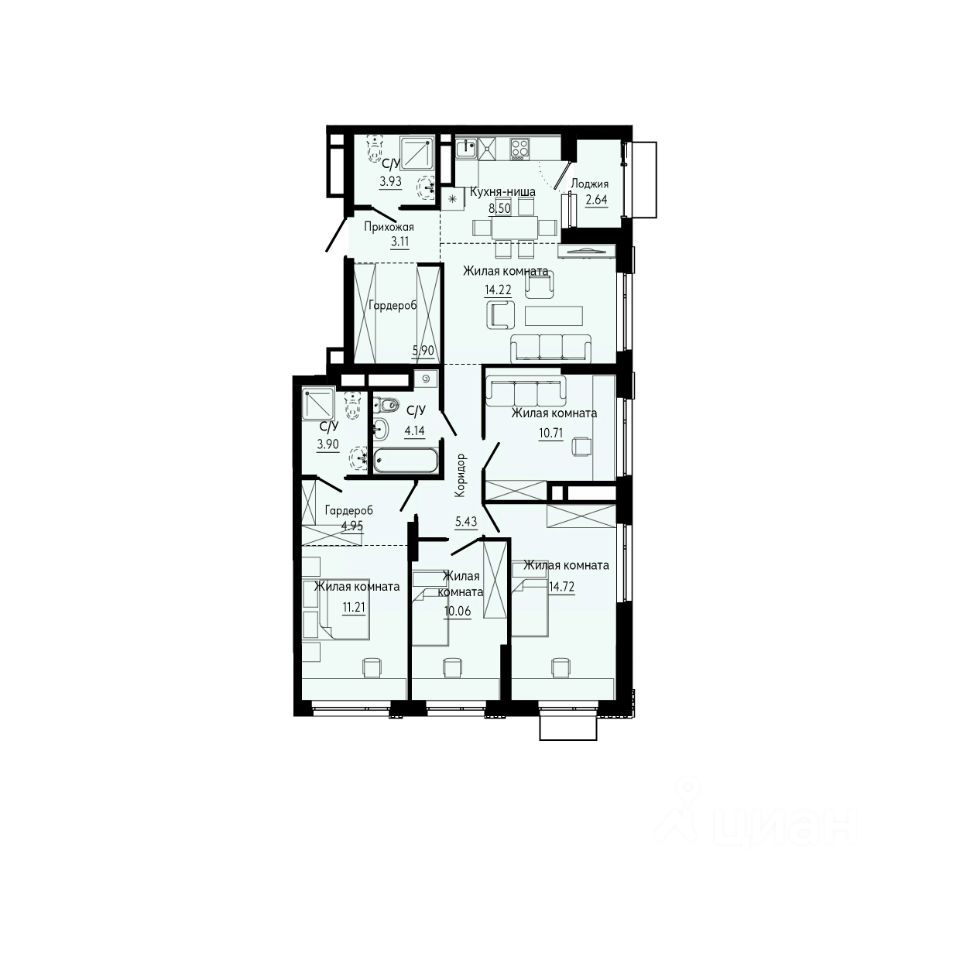 Продаётся 5-комнатная квартира в строящемся доме (Секция 1), срок сдачи: III-кв. 2027, общей площадью 102.1 кв.м., на 27 этаже. Новый жилой комплекс "Forum Park" от застройщика "Форум-Групп" расположен по адресу: г. Екатеринбург, Зоологическая улица.