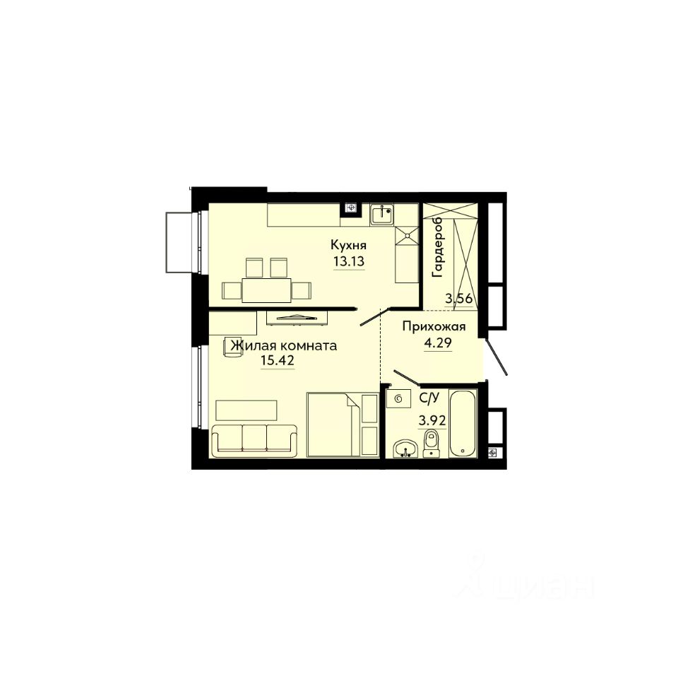 15,4 м²