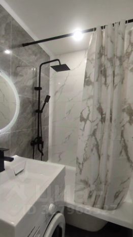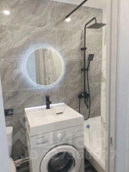 Санузел совмещённый, акриловая ванна, душ- система с тропическим душем 3 в1, зеркало с подсветкой, умывальник над стиральной машиной, покрытие керамогранит, шумоизоляция стен , гидроизоляция всего помещения, натяжной потолок.