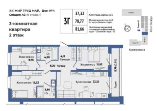 Продаётся 3-комнатная квартира в сданном доме (40-летия Октября, 33 (Дом 4 секция А)), срок сдачи: II-кв. 2025, общей площадью 81.6 кв.м., на 2 этаже. Жилой комплекс "Мир Труд Май" - современные дома под лозунгом традиций. Уютный квартал в самом сердце Уралмаша - в квадрате улиц 40 лет Октября - Кировградская - Ломоносова - Калинина. Выполняется застройка разной этажности, которая состоит из четырех многоквартирных домов с частными дворами, подземным паркингом с кладовыми.