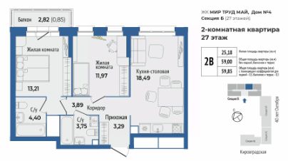 Продаётся 2-комнатная квартира в сданном доме (40-летия Октября, 33 (Дом 4 секция Б)), срок сдачи: I-кв. 2026, общей площадью 58.5 кв.м., на 27 этаже. Жилой комплекс "Мир Труд Май" - современные дома под лозунгом традиций. Уютный квартал в самом сердце Уралмаша - в квадрате улиц 40 лет Октября - Кировградская - Ломоносова - Калинина. Выполняется застройка разной этажности, которая состоит из четырех многоквартирных домов с частными дворами, подземным паркингом с кладовыми.