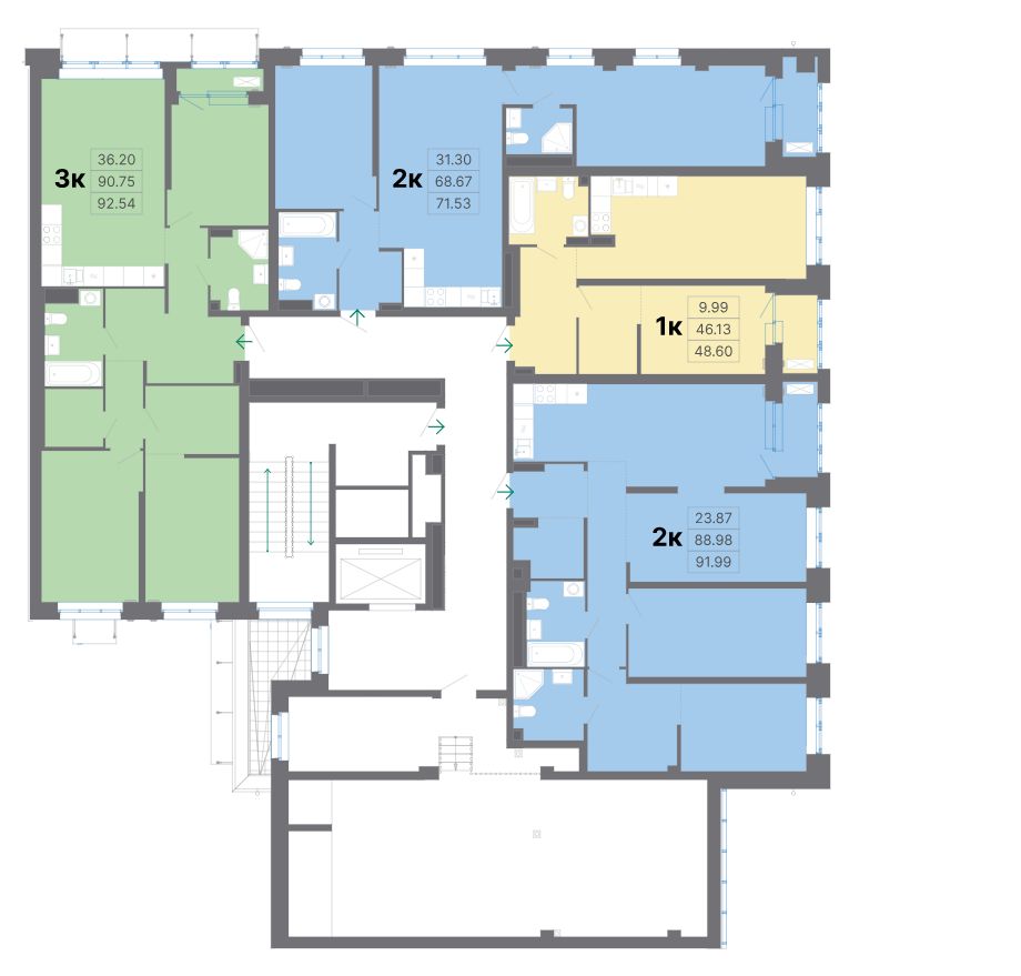Продаётся 2-комнатная квартира в строящемся доме (Дом 1 этап 2), срок сдачи: III-кв. 2028, общей площадью 91.99 кв.м., на 2 этаже. Новый жилой комплекс "Наука и искусство" от застройщика "Атомстройкомплекс" расположен по адресу: г. Екатеринбург, Комвузовская улица.