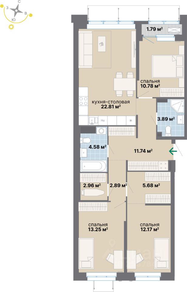Продаётся 3-комнатная квартира в строящемся доме (Дом 1 этап 2), срок сдачи: III-кв. 2028, общей площадью 92.54 кв.м., на 2 этаже. Новый жилой комплекс "Наука и искусство" от застройщика "Атомстройкомплекс" расположен по адресу: г. Екатеринбург, Комвузовская улица.