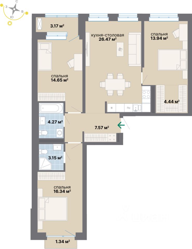 Продаётся 3-комнатная квартира в строящемся доме (Дом 1 этап 2), срок сдачи: III-кв. 2028, общей площадью 95.34 кв.м., на 6 этаже. Новый жилой комплекс "Наука и искусство" от застройщика "Атомстройкомплекс" расположен по адресу: г. Екатеринбург, Комвузовская улица.