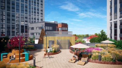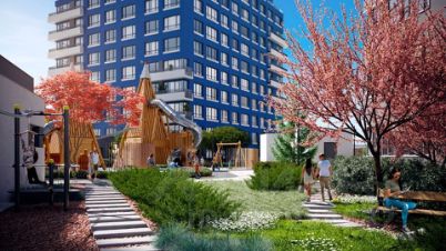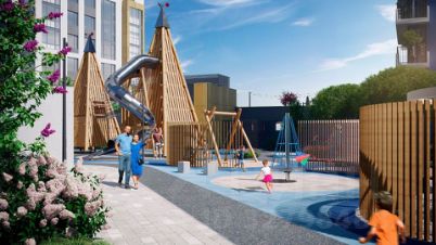 Территория содержит детскую площадку, проведено озеленение. Для безопасности жильцов установлены камеры видеонаблюдения. Выход во двор организован через парадный холл здания. Для владельцев личного транспорта предусмотрены места на отдельной стоянке.