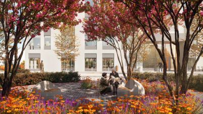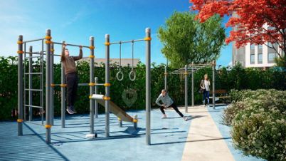 Территория содержит детскую площадку, проведено озеленение. Для безопасности жильцов установлены камеры видеонаблюдения. Выход во двор организован через парадный холл здания. Для владельцев личного транспорта предусмотрены места на отдельной стоянке.