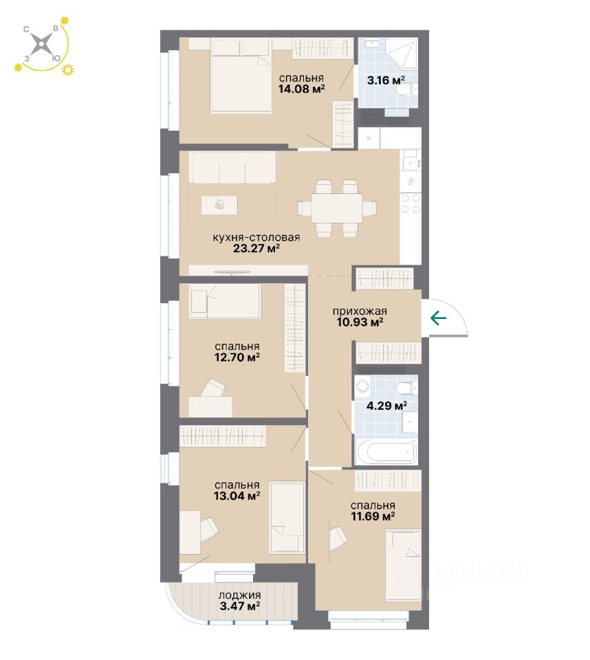 Продаётся 4-комнатная квартира в строящемся доме (18Б), срок сдачи: III-кв. 2026, общей площадью 96.63 кв.м., на 7 этаже. Расположение, транспортная доступность