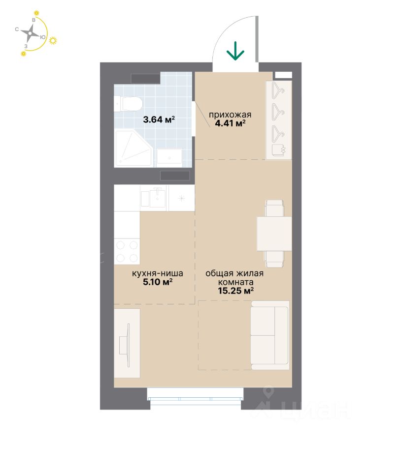 Продаётся студия в строящемся доме (Дом 2), срок сдачи: IV-кв. 2027, общей площадью 28.4 кв.м., на 6 этаже. Это дом, где все вживую, по-настоящему.