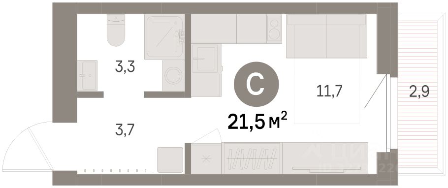 Студия в районе Шишимская горка. Особенности планировки: балкон, второй свет, предчистовая отделка.