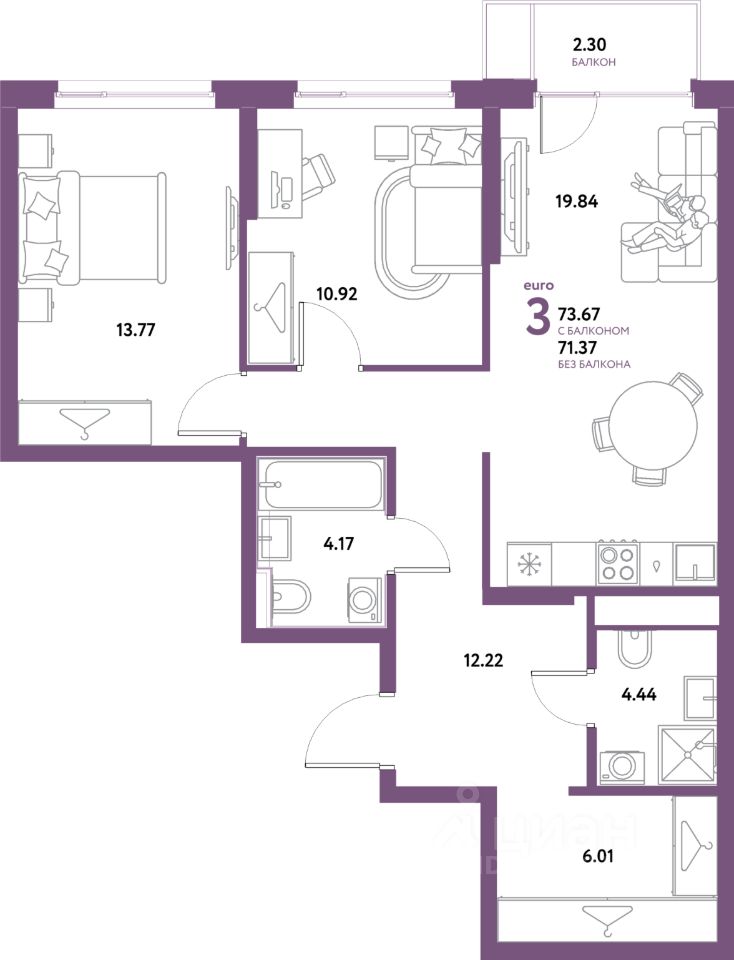 Продаётся 3-комнатная квартира в строящемся доме (Горный квартал), срок сдачи: IV-кв. 2029, общей площадью 73.67 кв.м., на 13 этаже. Новые жилые дома от Группы компаний "Страна Девелопмент" расположены в Октябрьском районе Екатеринбурга в границах ул. Сибирский тракт - Базовый переулок.