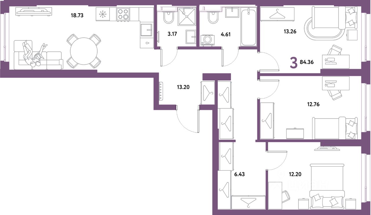 Продаётся 3-комнатная квартира в строящемся доме (Горный квартал), срок сдачи: IV-кв. 2029, общей площадью 84.36 кв.м., на 4 этаже. Новые жилые дома от Группы компаний "Страна Девелопмент" расположены в Октябрьском районе Екатеринбурга в границах ул. Сибирский тракт - Базовый переулок.