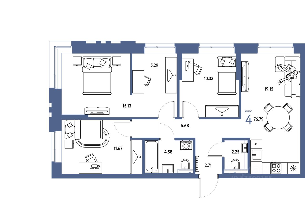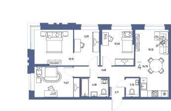 Продаётся 4-комнатная квартира в строящемся доме (Арт-Квартал (3 этап)), срок сдачи: III-кв. 2028, общей площадью 76.79 кв.м., на 2 этаже. Новые жилые дома от Группы компаний "Страна Девелопмент" расположены в Октябрьском районе Екатеринбурга в границах ул. Сибирский тракт - Базовый переулок.