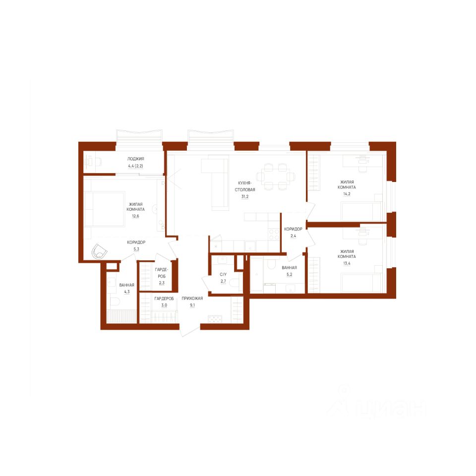 Продаётся 3-комнатная квартира в строящемся доме (Секция 1), срок сдачи: III-кв. 2026, общей площадью 107.9 кв.м., на 2 этаже. Новый жилой комплекс "Форма" от застройщика "Форум-Групп" расположен по адресу: г. Екатеринбург, улица Сони Морозовой.