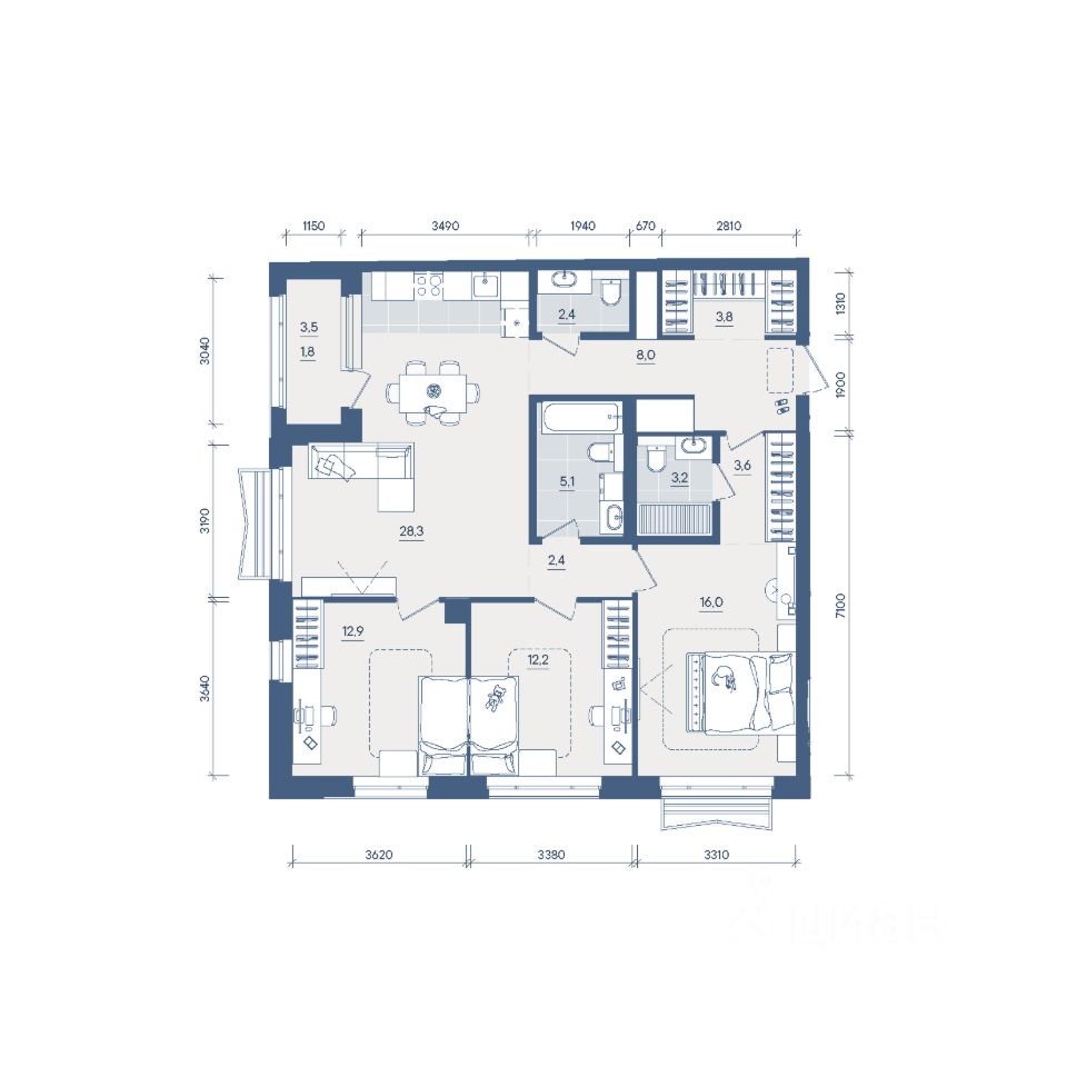 Продаётся 3-комнатная квартира в строящемся доме (Секция 2), срок сдачи: II-кв. 2028, общей площадью 99.7 кв.м., на 4 этаже. Новый жилой комплекс "Форма" от застройщика "Форум-Групп" расположен по адресу: г. Екатеринбург, улица Сони Морозовой.