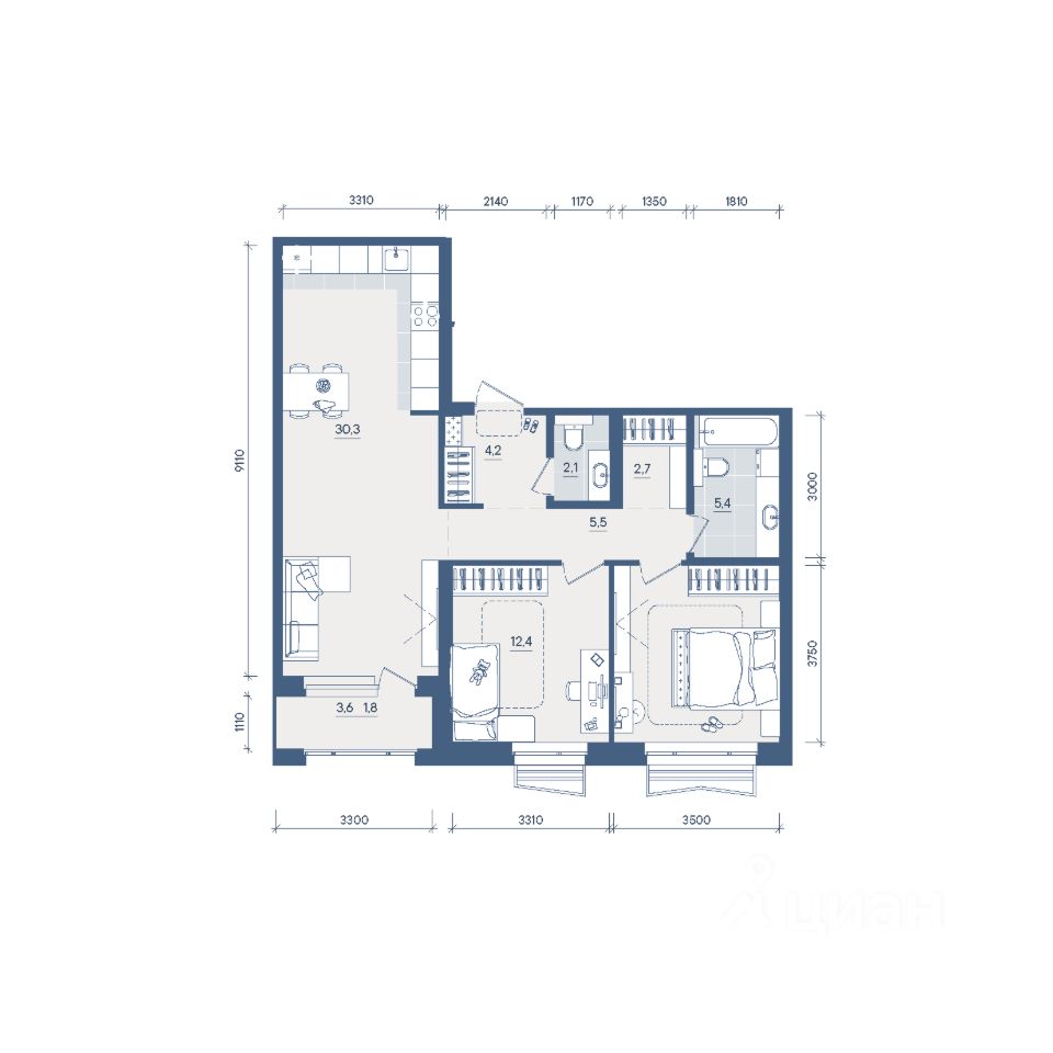 Продаётся 2-комнатная квартира в строящемся доме (Секция 2), срок сдачи: II-кв. 2028, общей площадью 77.5 кв.м., на 9 этаже. Новый жилой комплекс "Форма" от застройщика "Форум-Групп" расположен по адресу: г. Екатеринбург, улица Сони Морозовой.