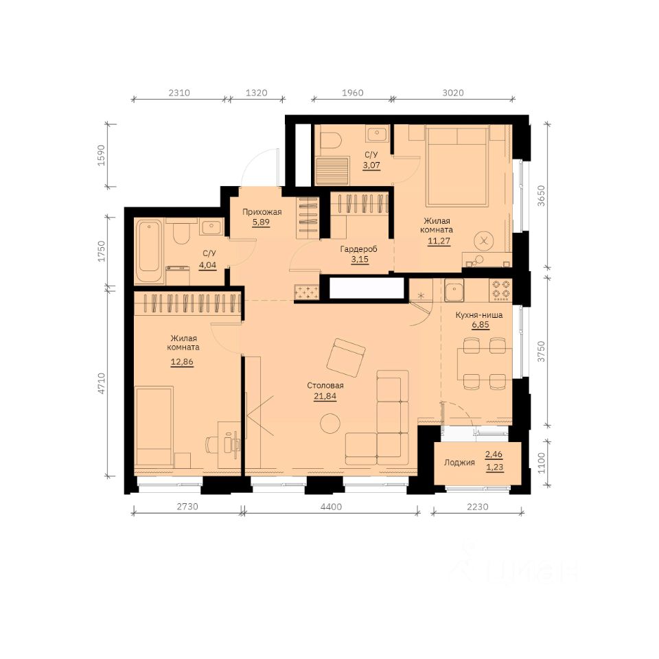 Продаётся 2-комнатная квартира в строящемся доме (Дом 1), срок сдачи: IV-кв. 2027, общей площадью 70.2 кв.м., на 17 этаже. Новый жилой комплекс "GRAFIT" от застройщика "Форум-групп" расположен по адресу: г. Екатеринбург, улица Победы.