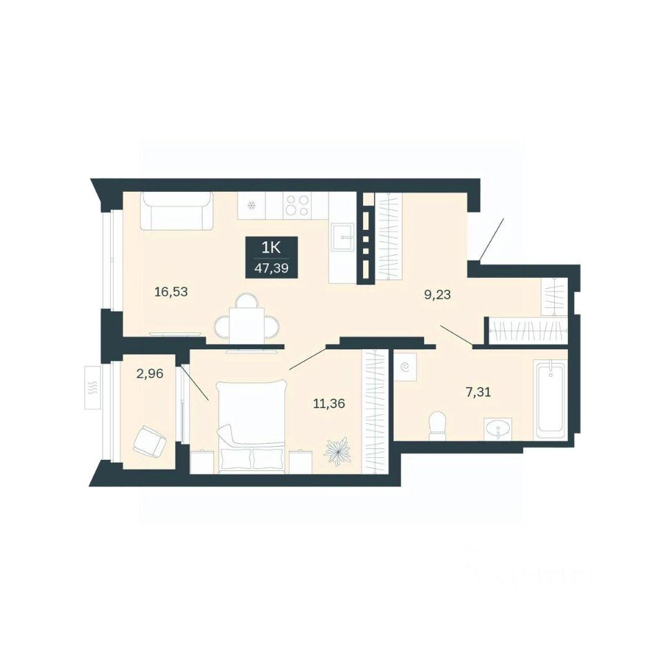 Продаётся 1-комнатная квартира в строящемся доме (Секции 5-9), срок сдачи: I-кв. 2029, общей площадью 47.39 кв.м., на 3 этаже. Новый жилой комплекс "Сибирская калина" от застройщика "СЗ Атлант-Екатеринбург" расположен по адресу: г. Екатеринбург, улица Титова.