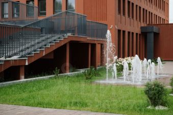 Так, водная концепция объединяет интерьер холлов: здесь можно понаблюдать за настоящим водопадом, дождаться курьера или такси в мягкой зоне, поработать за ноутбуком. Входные группы выполнены на уровне земли без ступеней, порогов и пандусов.