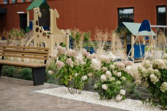 Дворовое пространство недоступно для автомобилей и посторонних. Можно отпускать гулять детей одних, не беспокоясь за их безопасность: установлено видеонаблюдение. Во дворе есть все для комфортного отдыха и счастливого детства: два сухих фонтана для летних игр, игровые площадки, качели, уличные шахматы. Для взрослых лаунж-зоны, собственный спортивный корт и воркаут-пространство.