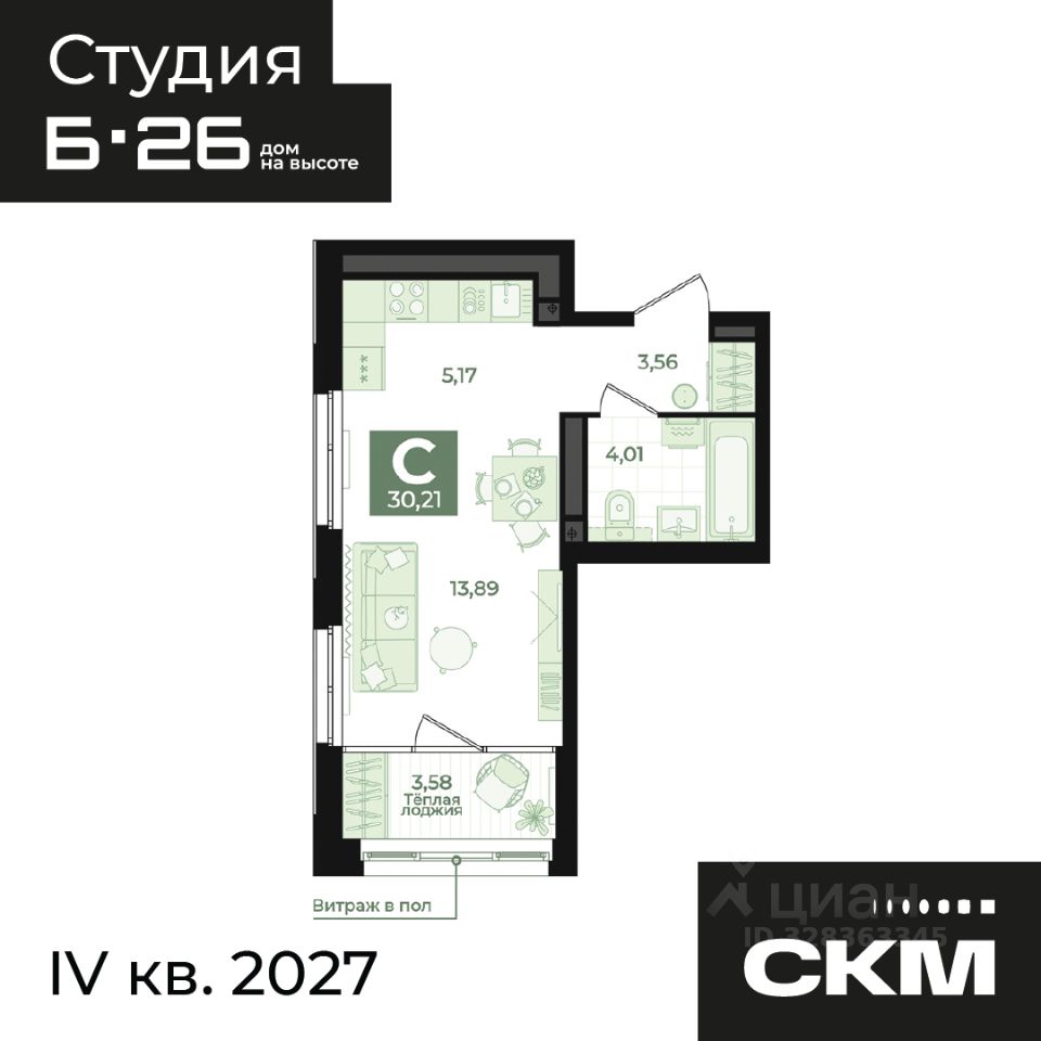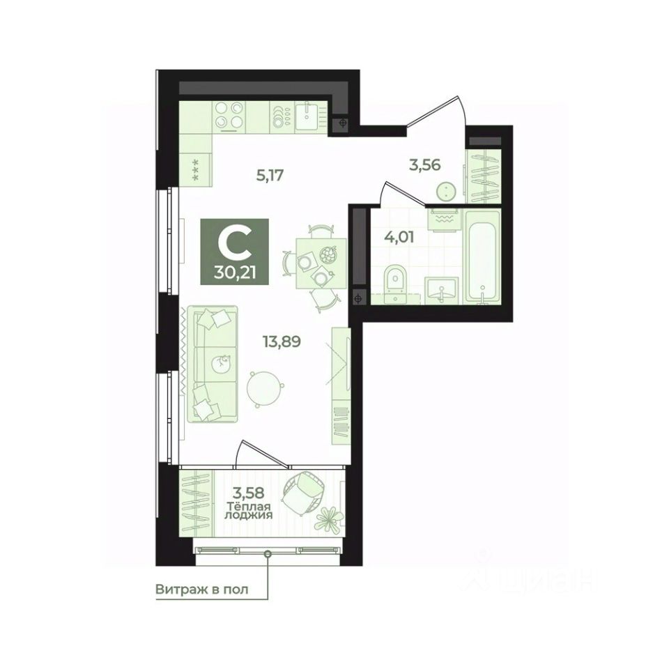 Общая площадь30,21 м²