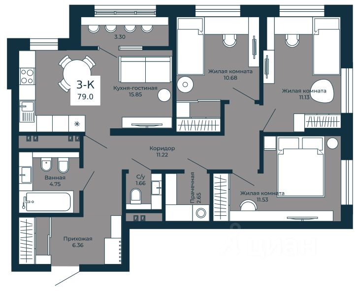 Общая площадь79 м²