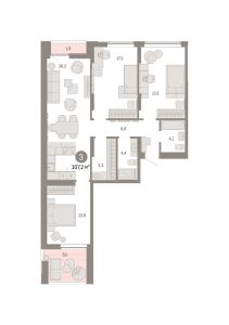 Квартира с кухней-гостиной и тремя спальнями в районе Шишимская горка. Особенности планировки: второй санузел, гардеробная, ипотека 10%, окна на две стороны, предчистовая отделка, разнесённые спальни, терраса на крыше.