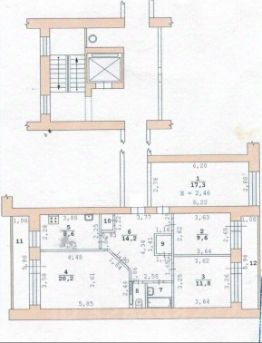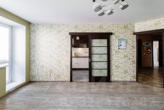 Рациональная планировка: общая площадь по документам - 87,9 кв. метра. Плюс к этому две лоджии по 3 кв. метра каждая. Три отдельные спальные комнаты от 10 до 17 м. Вход на кухню осуществляется через гостиную. Между ними перегородка и раздвижная дверь. Раздельный санузел, дополнительно на месте кладовки рядом с кухней обустроили второй туалет.