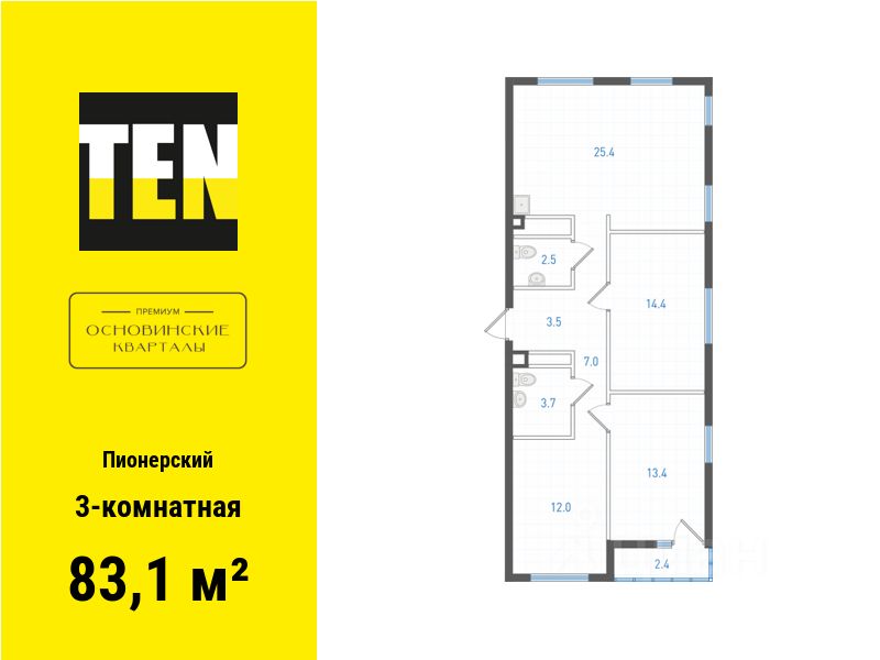 Квартира в ЖК "ОК: Премиум" в Пионерском микрорайоне от застройщика TEN девелопмент! Ключи во 2 квартале 2027 года.