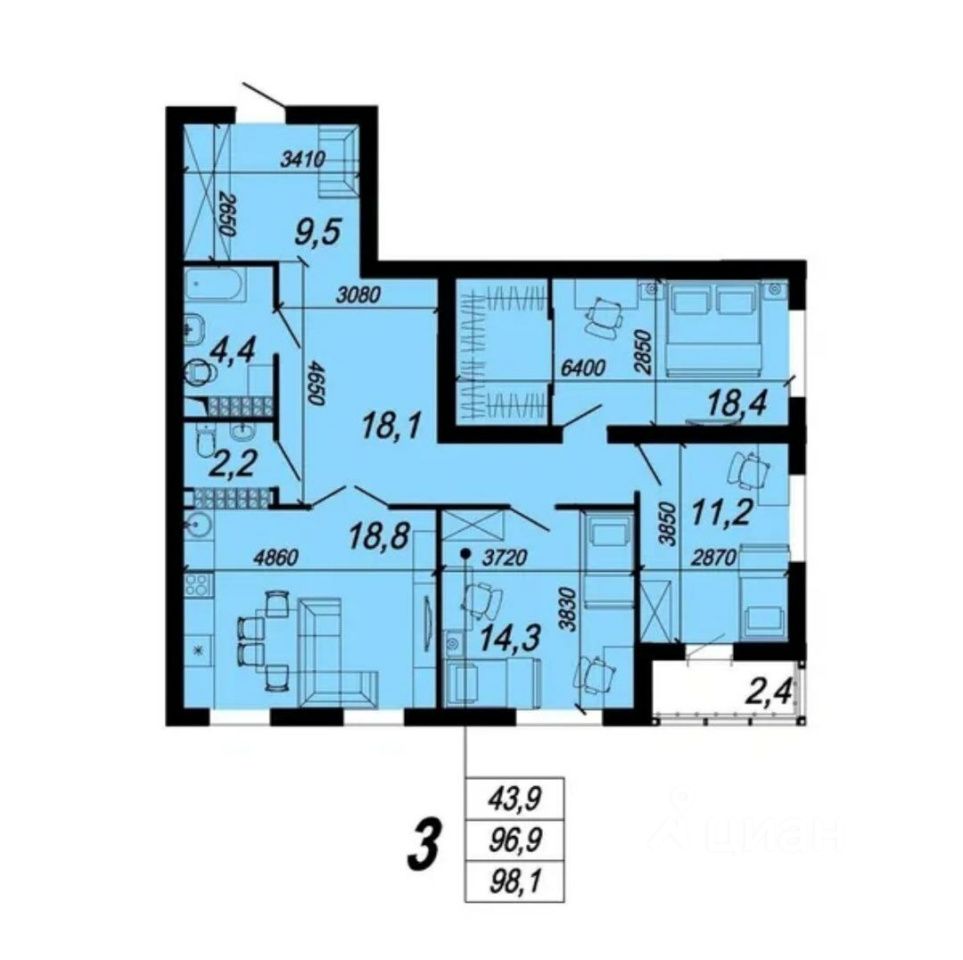 - 3 отдельные комнаты 11.2 м2, 14.3 м2, 18.4 м2— удобно для спальни, детской, кабинета и гостевой. Все комнаты правильной формы. Одна комната с мастер -спальней со своей гардеробной и выходом на лоджию, с прекрасным видом и уютным местом для отдыха.