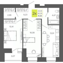 Продаётся 2-комнатная квартира в строящемся доме (Дом 1), срок сдачи: II-кв. 2026, общей площадью 61.63 кв.м., на 1 этаже. Новый жилой дом от Специализированного застройщика "ПушкинЪ" расположен в г. Каменск-Уральский Свердловской области на ул. Советская.