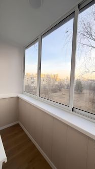 БАЛКОН облагорожен, остеклен. Обшит качественными панелями, имеет точку электрики, розетку, освещение.