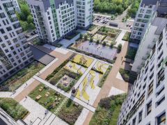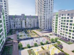 Во дворе для взрослых и детей - безопасные игровые площадки, футбольное и стритбольное поля, пикник-зона и шезлонги. Ухоженные дорожки среди деревьев и цветущих кустарников, скамейки и сад камней для прогулок.