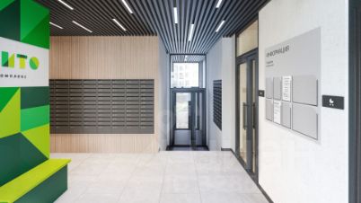 Просторные холлы в "Мохито" — пример современного подхода к организации общего пространства в многоквартирном доме. Сдержанные тона в отделке, аккуратные почтовые ящики, коллажи на стенах и информативная навигация — всё сделано для удобства жильцов.