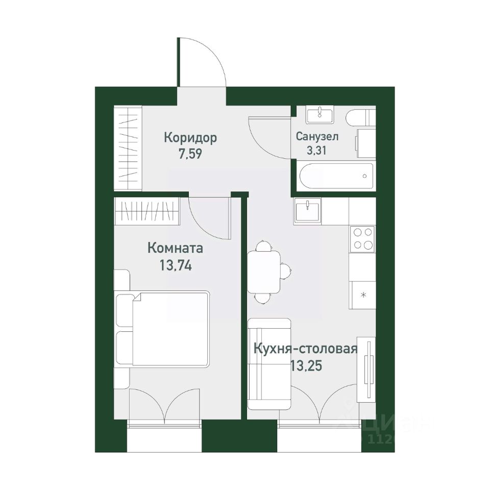 Общая площадь37,4 м²