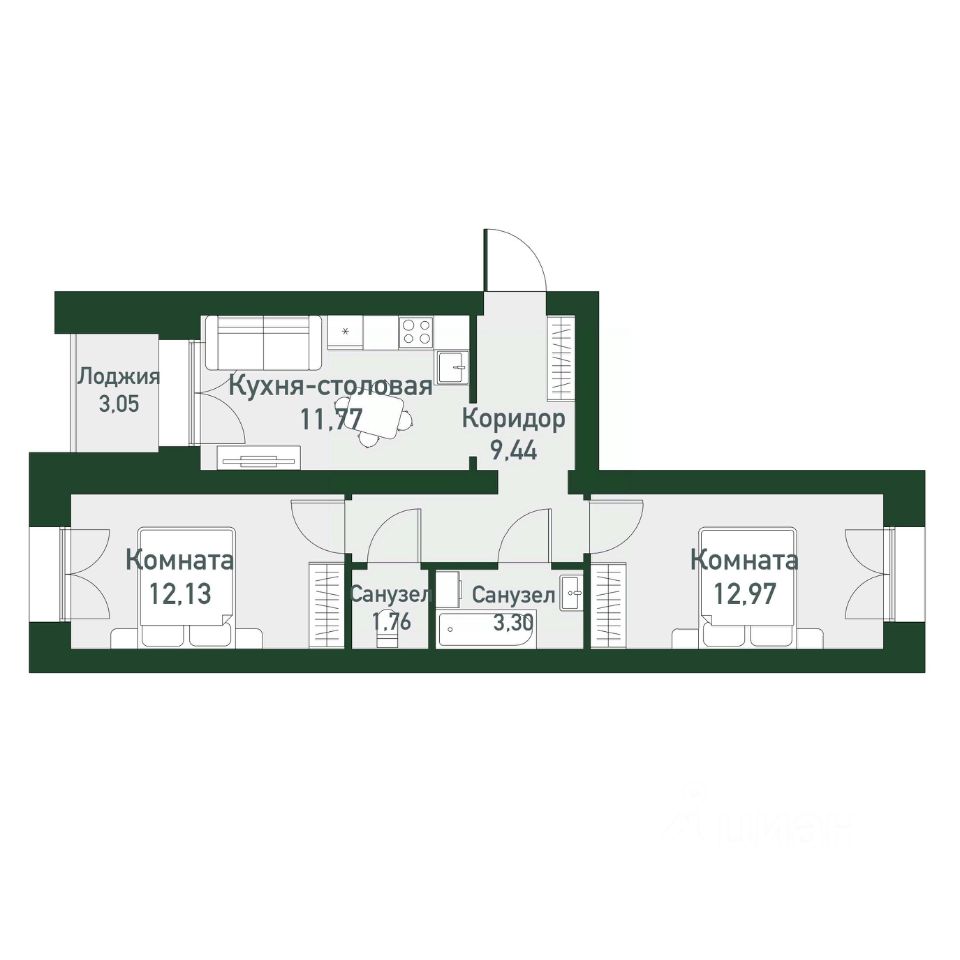 Общая площадь52,8 м²