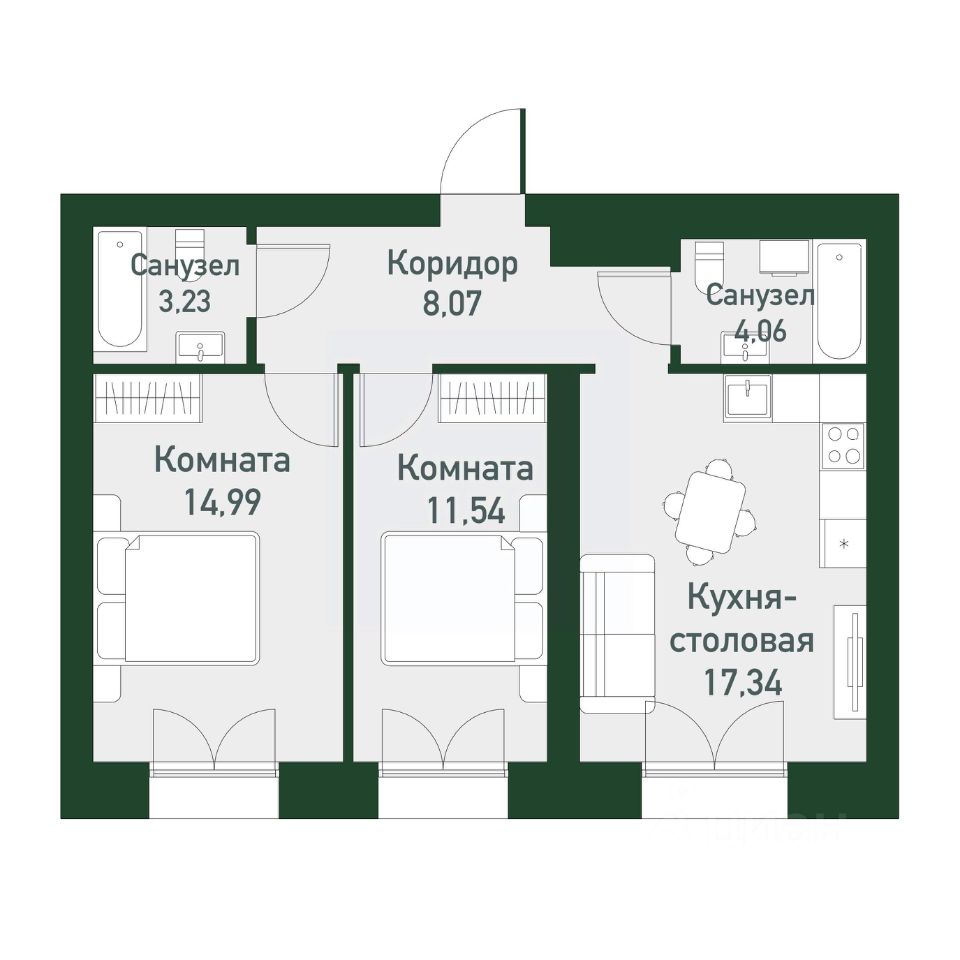 Общая площадь59,7 м²