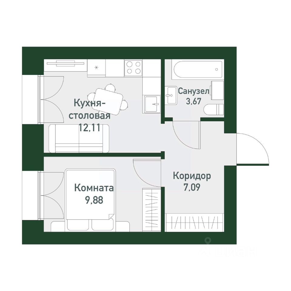 Общая площадь32,3 м²