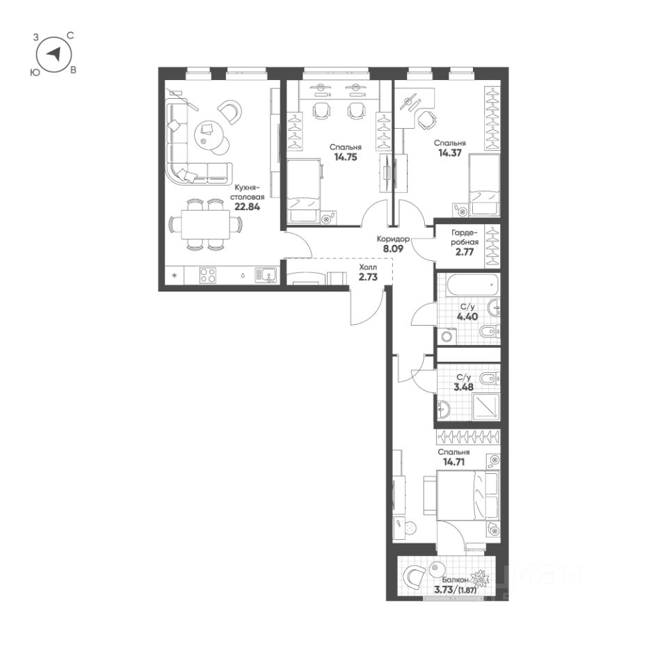 Продаётся 3-комнатная квартира в строящемся доме (Дом 6.2), срок сдачи: I-кв. 2026, общей площадью 89.5 кв.м., на 10 этаже. Новый жилой комплекс "Жилой район "Солнечный"" от застройщика "ГК Эталон" расположен по адресу: г. Екатеринбург, Золотистый бульвар.