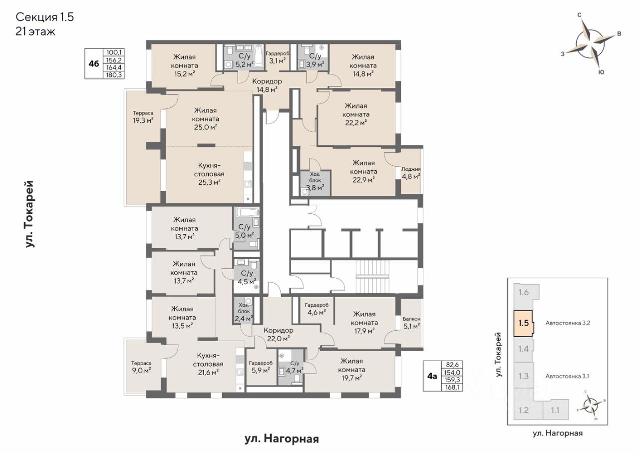 ЖК "Нагорный" ультрасовременный жилой квартал бизнес-класса, расположенный в самом центре Екатеринбурга с развитой инфраструктурой и роскошным панорамным видов на деловую часть города и акваторию Визовского пруда. — Победитель градостроительного конкурса "ТОП ЖК 2024" в номинации "Лучшая архитектурная подсветка фасада" и "Лучшее озеленение и ландшафтный дизайн территории" — Победитель градостроительного конкурса "ТОП ЖК 2022" в номинации "Лучший жилой комплекс-новостройка РФ"; — "Лучший региональный жилой комплекс бизнес-класса" по версии престижной федеральной премии Urban Awards 2021. Новая очередь ЖК "Нагорный": — единое гранд-лобби с мягкой зоной и стильным дизайнерским оформлением, создающее атмосферу гостеприимства и уюта; — исключительный вид на акваторию Визовского пруда наслаждайтесь красотой природы прямо из вашего окна! — просторные гардеробные и хозяйственные комнаты идеальное решение для организации вашего пространства; — квартиры увеличенной площади с отдельным входом для персонала дополнительный комфорт и приватность для Вас и Вашей семьи; — уютные квартиры с террасами на кровле; — двухуровневый теплый подземный паркинг и локеры для хранения негабаритных и сезонных вещей; — просторные колясочные и велосипедные комнаты; — благоустроенная плаза всего комплекса с эксклюзивным ландшафтным оформлением; — сервис собственной управляющей компании 24/7; — Wi-Fi и приятная музыка на всей территории двора. Локация ЖК "Нагорный" возводится в квадрате улиц Токарей-Нагорная-Синяева-Мельникова в историческом центре с развитой инфраструктурой и сетью общественного транспорта. В ближайшем окружении располагаются торговые центры и рестораны, десятки музеев, образовательные учреждения, парки, объекты культуры искусства. Выгодное месторасположение "Нагорного" открывает все возможности для занятий спортом, включая велотрекинг, парусную регату и яхтинг. Благоустройство Детские игровые комплексы с экологичным покрытием - морской галькой. Workout-зона для занятий спортом на свежем воздухе Спортивный корт для зимних и летних игр Lounge-Зоны с уютными беседками из натурального дерева Wi-Fi и приятная музыка на всей территории двора Безопасность Круглосуточная многоуровневая система доступа. Собственная служба мониторинга. Видеонаблюдение. Домофонная система CAME-от разработчика дизайна Ferrari, с функцией звонка на смартфон. Внешняя инфраструктура Фитнес-центр премиум-формата World Class "Нагорный" со взрослым и детским бассейнами. Тренажерный зал с зоной функционального тренинга и единоборств, залы групповых программ, сайкл-студия, джакузи, травяная сауна и хаммам, SPA. В семейном медицинском центре "УГМК-Здоровье" ведут прием самые востребованные врачи - педиатры, терапевты, а также узкие специалисты. Для резидентов представлен широкий спектр медицинских услуг. Стоматология "Dental Pro" Ресторан "Breadway-cafe" Супермаркет "Перекрёсток" Винная лавка "Кино-Домино" Кафе-пекарня "Хлеб и булки" Салон красоты Внутренняя инфраструктура Крытая вел