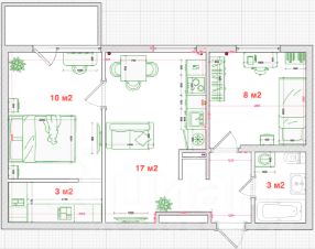 Удобная планировка (кухня-гостиная 17 кв.м., две спальни 8 и 10 м2 с большой гардеробной)