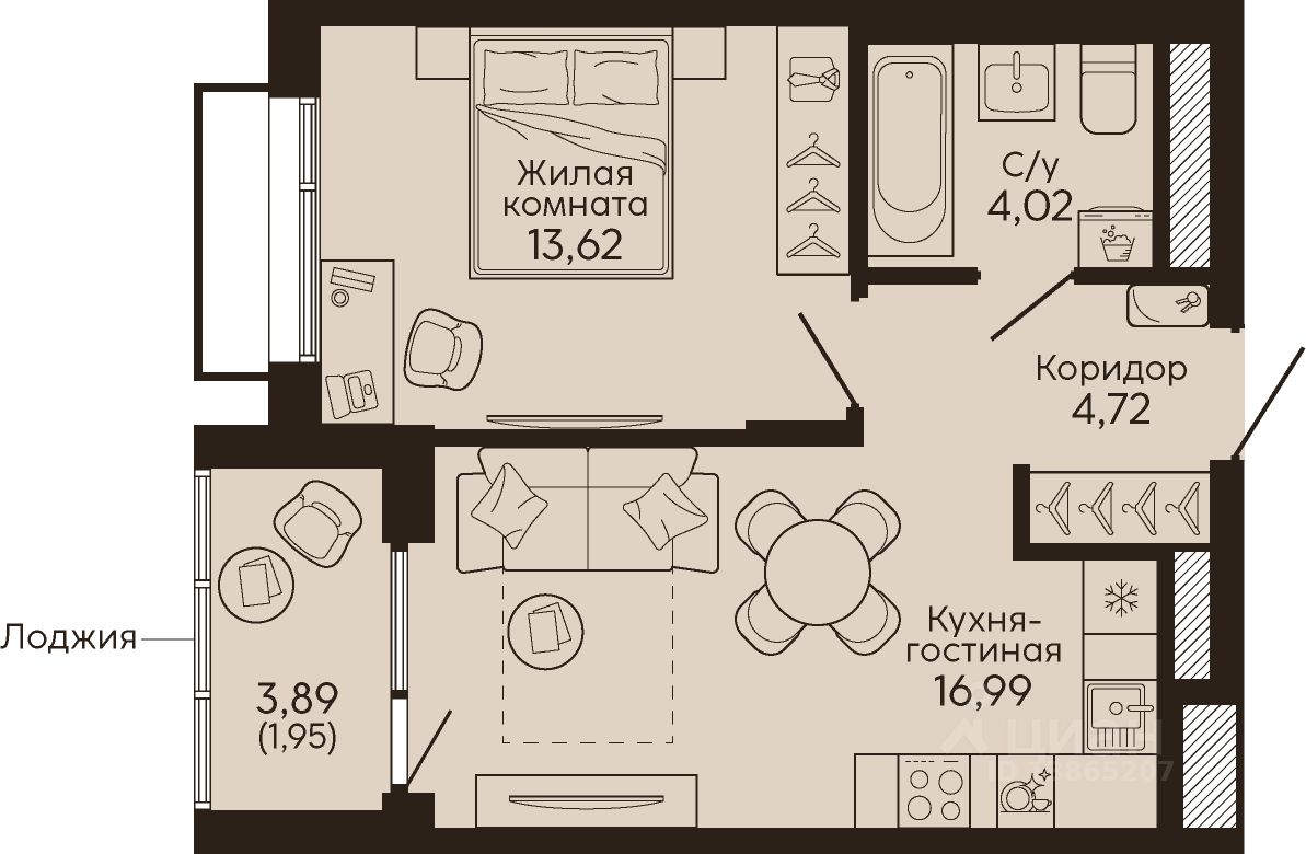 Жилая площадь13,6 м²